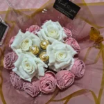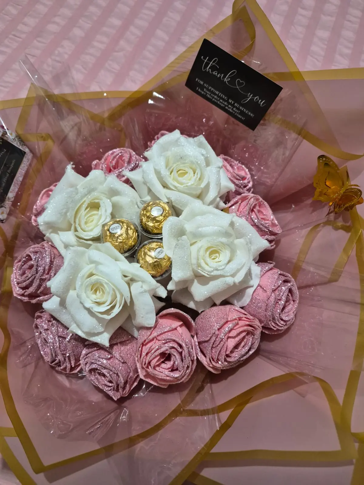15 Pink & White Roses, 3 Ferrero Rocher Chocolates, Butterfly