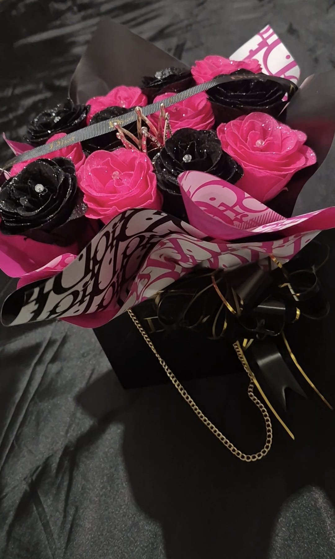 Dior Box 12 Roses with Ribbon Crown & Diamontes